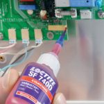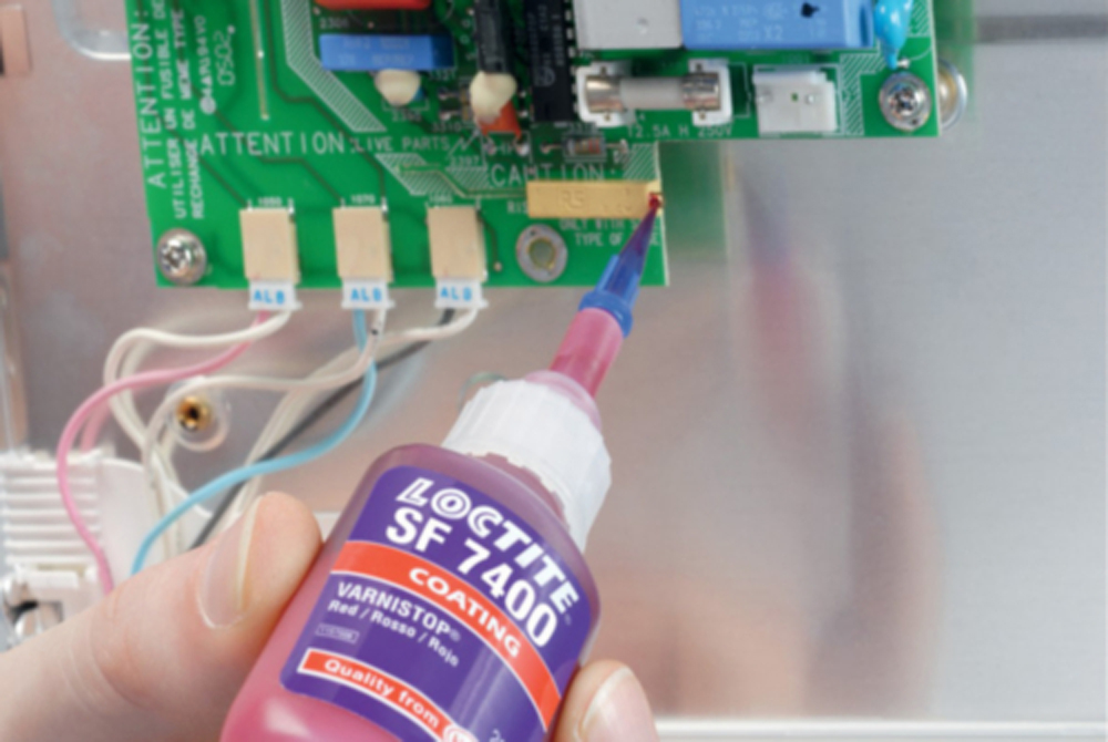 LOCTITE® SF 7400 is a dark-red, solvent-based marking ink for use on electronic equipment. It is ideal for tamper-proofing adjustment points or marking components to indicate they have been set or tested. The product dries quickly and has excellent adhesion to a range of substrates. It has a service temperature range of -35 to +145°C and is available in a 20 ml pack size.